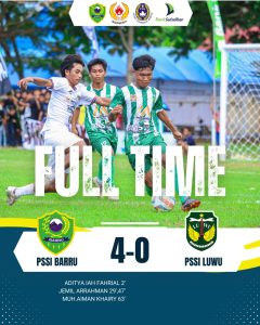 Dalam pertandingan tersebut, tim tuan rumah Kabupaten Barru tampil dominan dan sukses menundukkan tamunya Luwu dengan skor telak 4-0.