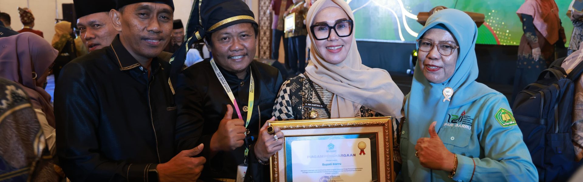 Bupati Barru, Andi Ina Kartika Sari, SH., M.Si., bersama lima Bupati/Wali Kota dari Sulawesi Selatan dan 43 kepala daerah se-Indonesia hadir menerima apresiasi dari Kementerian Agama RI atas dukungan dan peran dalam penguatan fungsi Penyuluh Agama melalui alokasi anggaran di daerah masing-masing.