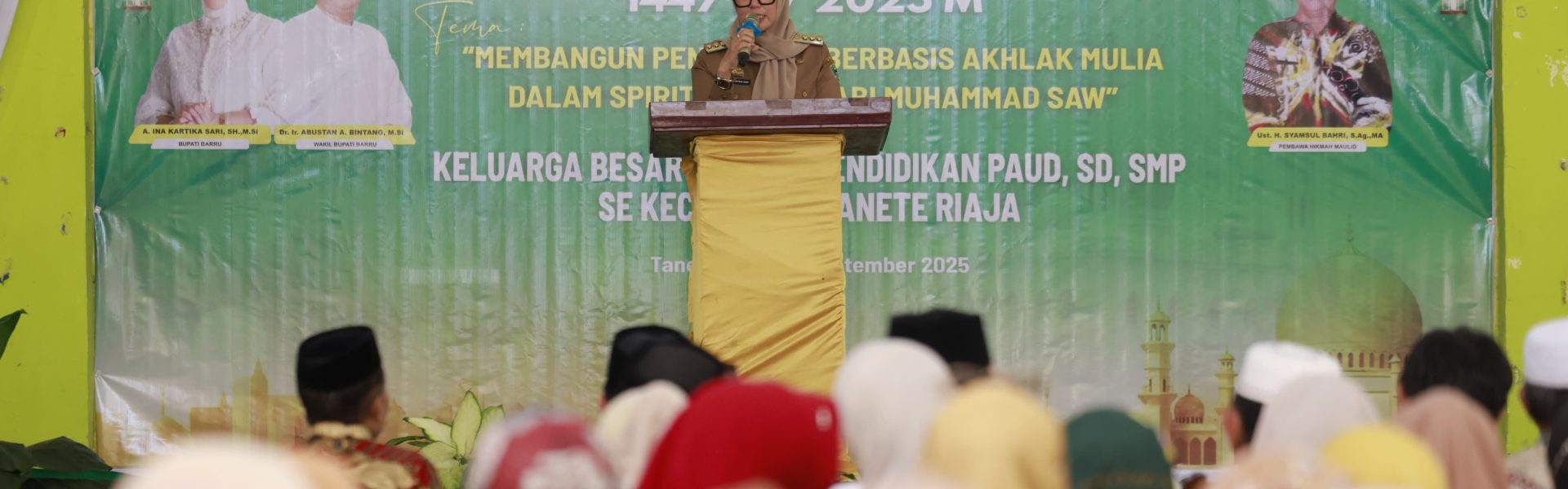 Hadir langsung dalam kegiatan tersebut, Bupati Barru, Andi Ina Kartika Sari, S.H., M.Si., yang menegaskan bahwa momentum Maulid bukan sekadar perayaan seremonial, melainkan ajang untuk meneladani akhlak Rasulullah SAW sekaligus memperkuat komitmen dalam membangun dunia pendidikan di Kabupaten Barru.