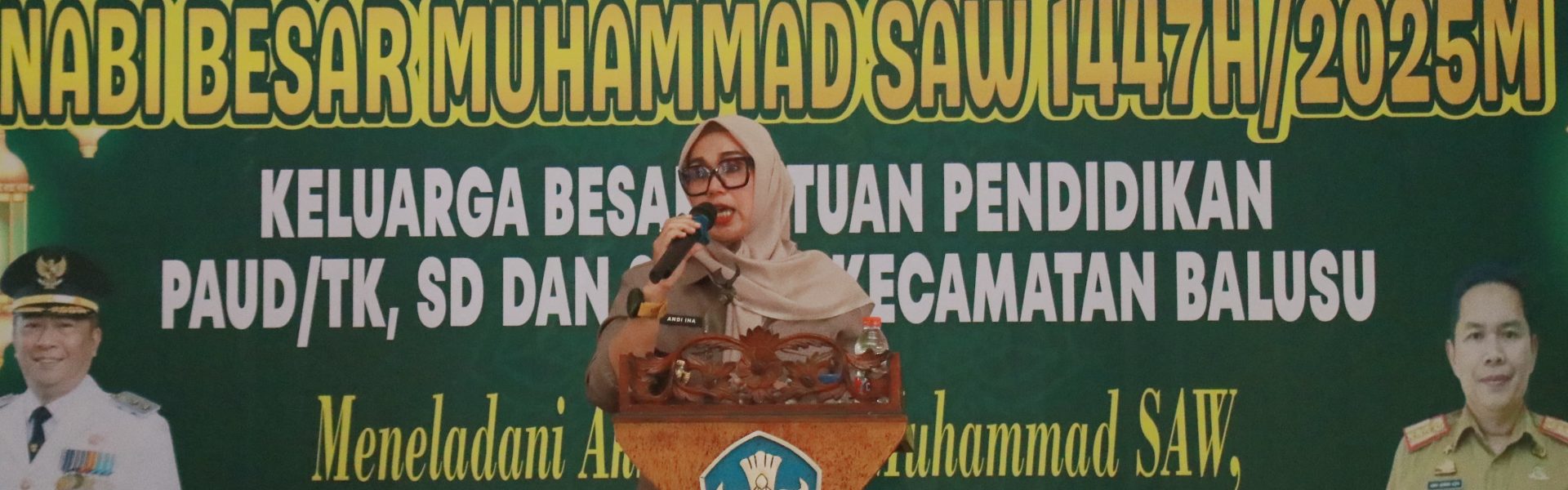 BARRU, Karebasulsel.com. – Bupati Barru, Andi Ina Kartika Sari, S.H., M.Si., menghadiri Peringatan Maulid Nabi Besar Muhammad SAW 1447 H/2025 yang diselenggarakan keluarga besar satuan pendidikan se-Kecamatan Balusu. Kegiatan ini dipusatkan di Gedung Pusat Kegiatan Guru (PKG), Kelurahan Takkalasi, Kecamatan Balusu, Kabupaten Barru, pada Jumat (26/09/2025).