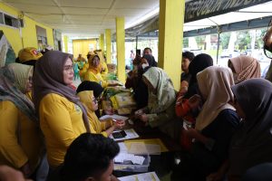 Kegiatan yang digelar di halaman Kantor DPD II Partai Golkar ini disambut antusias masyarakat karena menyediakan kebutuhan pokok dengan harga terjangkau.
