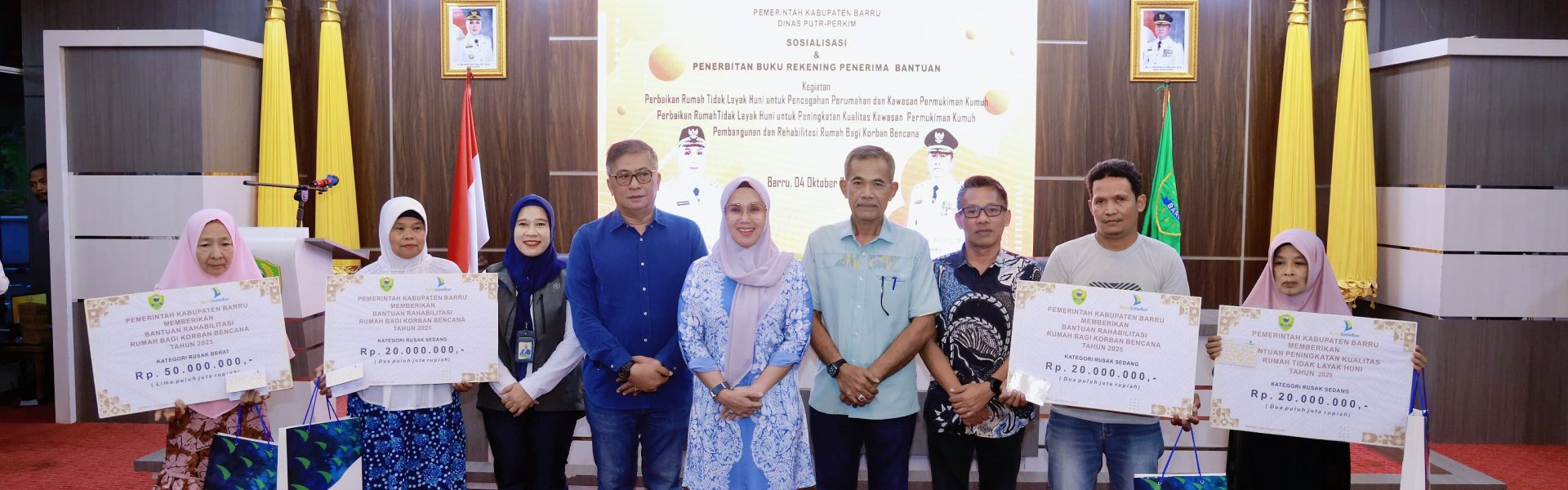 Kegiatan ini dirangkaikan dengan Sosialisasi dan Penerbitan Buku Rekening Penerima Bantuan yang digelar oleh Dinas PUTR-Perkim Kabupaten Barru bekerja sama dengan Bank Sulselbar Barru, bertempat di Baruga Singkerru Adae Rumah Jabatan Bupati Barru, Sabtu (4/10/2025).