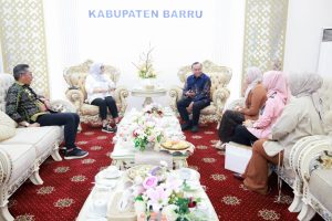 BARRU, Karebasulsel.com., – Bupati Barru, Andi Ina Kartika Sari, S.H., M.Si., didampingi Wakil Bupati Barru Abustan Andi Bintang, M.Si., menerima audiensi General Manager Telkom Witel Sulbagsel, Eri Susanto, bersama jajaran di ruang utama Rumah Jabatan Bupati Barru, Kamis 23/10/2025.