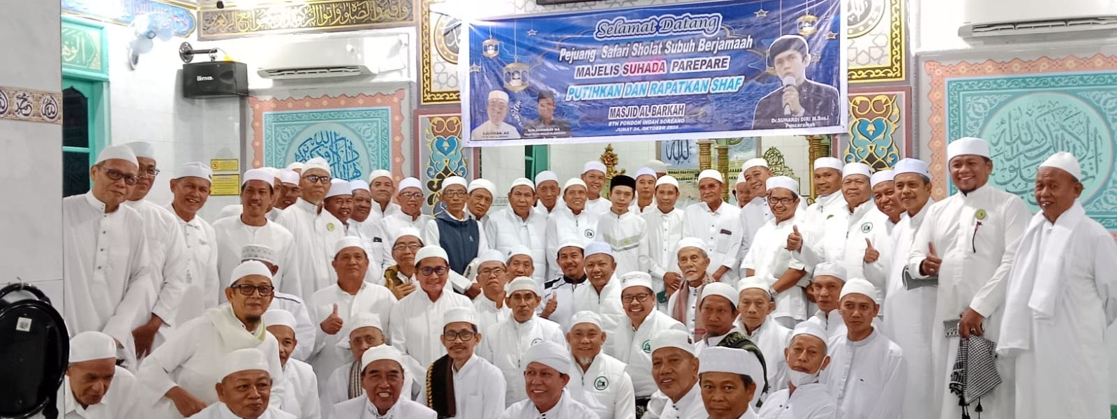 PAREPARE, Karebasulsel.com., – Majelis Syuhada Kota Parepare kembali menggelar kegiatan Safari Subuh Berjamaah yang kali ini dipusatkan di Masjid Al Barkah, Pondok Indah, Kelurahan Bukit Harapan, Jumat (24/10/2025). Kegiatan rutin ini diikuti ratusan jemaah hingga meluber ke teras dan bahu jalan di sekitar masjid.
