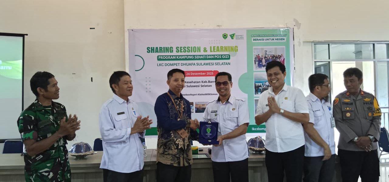 LKC Dompet Dhuafa Sulawesi Selatan juga memberikan Plakat Penghargaan kepada Dinas Kesehatan Kab. Barru sebagai bentuk terimakasih karena telah bersinergi dalam pelaksanaan program Kampung Sehati dan Pos Gizi Humia Trust.