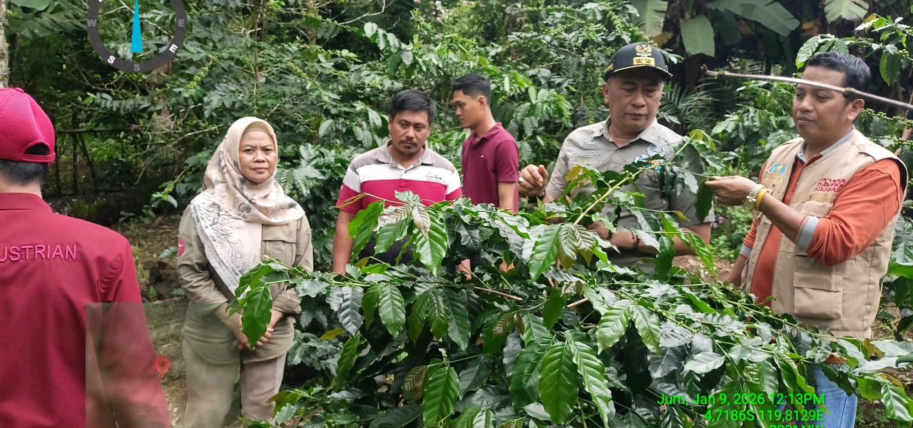 BARRU, Karebasulsel.com., – Wakil Bupati Barru Dr. Ir. Abustan Andi Bintang, M.Si., didampingi Kepala Dinas Pertanian Kabupaten Barru Ir. Ahmad. M.M., melakukan monitoring pertanaman bibit kopi yang bersumber dari bantuan Anggaran Pendapatan dan Belanja Negara (APBN) dan Anggaran Pendapatan dan Belanja Daerah (APBD) Tahun Anggaran 2025, di sejumlah lokasi pengembangan perkebunan kopi di Desa Patappa, Desa Pujananting dan Desa Gattareng Kecamatan Pujananting Kabupaten Barru, Jumat 9/1/2026.