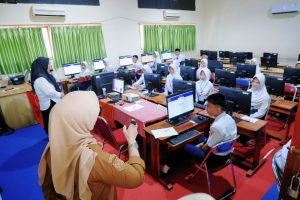 Saat meninjau ruang ujian dan berdialog dengan para siswa, Andi Ina Kartika Sari menyapa dan memberikan motivasi agar anak-anak tetap tenang, percaya diri, serta mengerjakan soal dengan jujur dan penuh tanggung jawab.