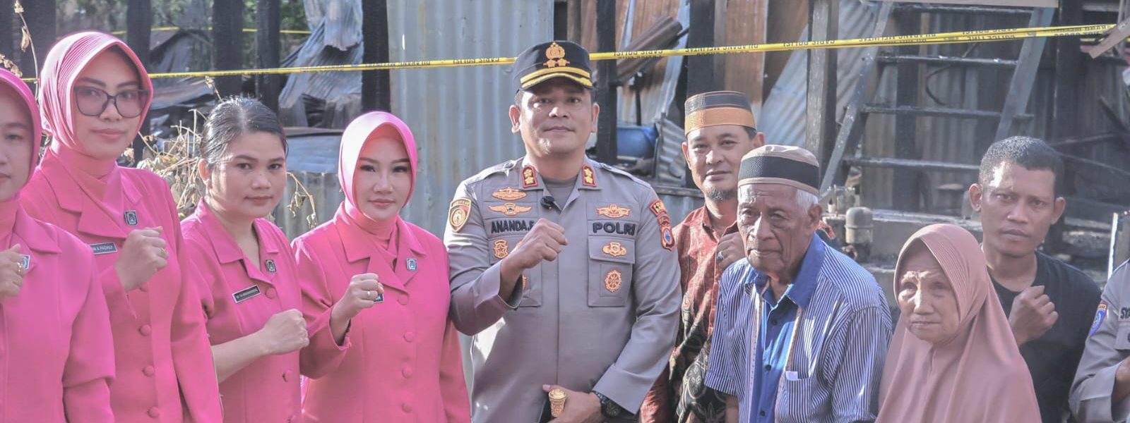 Dalam kegiatan tersebut, Kapolres Barru bersama Ketua Bhayangkari Cabang Barru menyerahkan bantuan sosial berupa paket sembako kepada dua warga yang menjadi korban kebakaran, yaitu Andi Mappiasse (80), pekerjaan wiraswasta, dan Andi Sukarman (38), karyawan PLTU Lampoko, yang keduanya berdomisili di Wiringpulue, Desa Lampoko, Kecamatan Balusu.