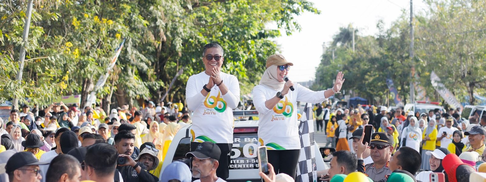 Suasana semakin semarak saat Wakil Bupati Abustan Andi Bintang turut membakar semangat peserta dengan yel-yel khas. “Hari ini semangat! Bahagia untuk Hari Jadi ke-66! Kalau saya bilang ‘Kabupaten Barru’, jawab ‘Okesi !’ Kabupaten Barru! Okesi ! Kabupaten Barru! Okesi ! Sekali lagi, Kabupaten Barru! Okesi !” serunya yang disambut riuh peserta.