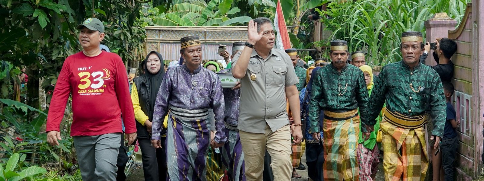 Suasana semakin hangat ketika Wakil Bupati turut menyinggung salah satu tradisi khas dalam rangkaian acara, yakni prosesi “dibasahi” sebagai simbol keberkahan.