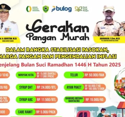 Gerakan Pangan Murah Nasional tahun ini mengusung tema “Bersatu Berdaulat, Rakyat Sejahtera, Indonesia Maju”, sejalan dengan komitmen pemerintah pusat hingga daerah dalam memastikan masyarakat tetap memiliki akses terhadap pangan pokok yang cukup, terjangkau, dan berkualitas, terutama di tengah dinamika harga yang fluktuatif.